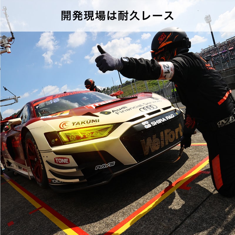 その高い性能は日本最高峰のレース ”SUPER GT” や日本一過酷な耐久レース ”富士24時間レース”など、数々のレース現場において、開発と検証を繰り返し磨き上げられて来ました。